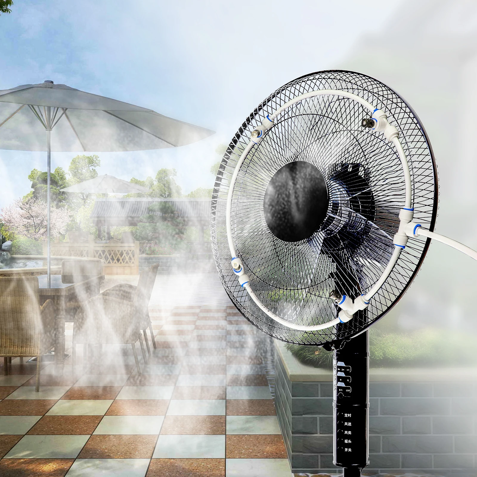 Он используется для вентиляторов, больших зонтов, патио и т. Д., с деликатным распылением, эффективно снижающим температуру воздуха, повышением влажности воздуха и отличным охлаждающим эффектом, чтобы вы и ваша семья чувствовали себя более комфортно даже в жаркую погоду.