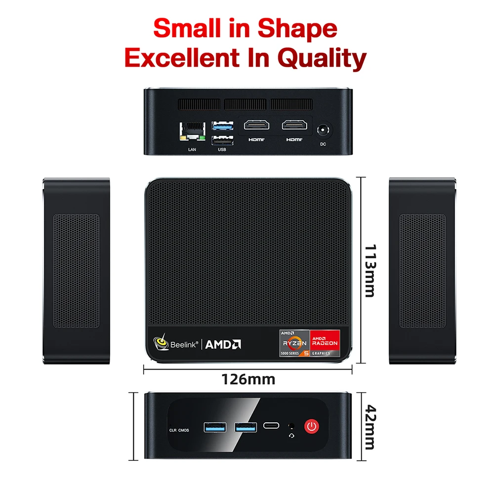 Beelink SER5 5600H AMD Ryzen 7 SER4 4800U 4700U WiFi 6E Windows 11 Pro мини ПК DDR4 16 ГБ 500 ГБ BT5.2 1000 м настольный мини компьютер
