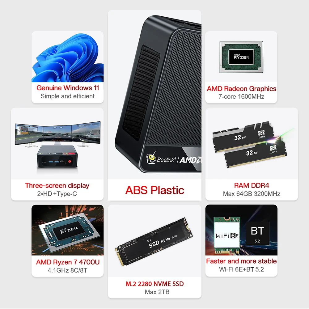 SER4 4700U Wifi6E :( пластиковый чехол)