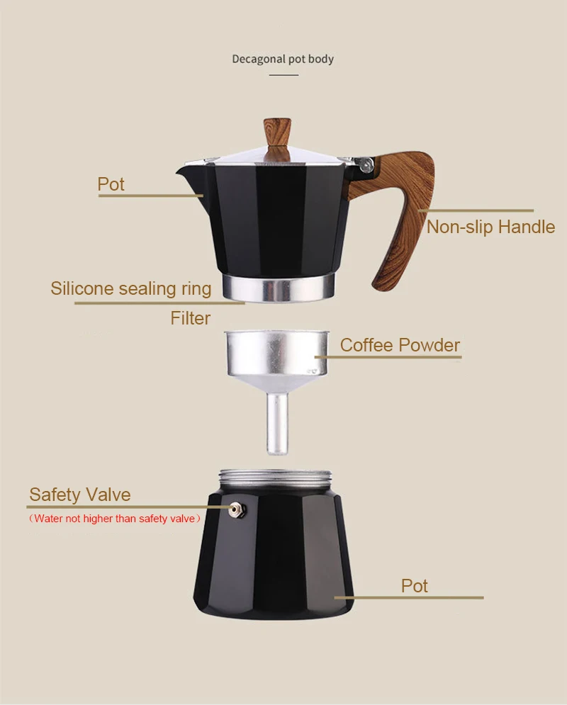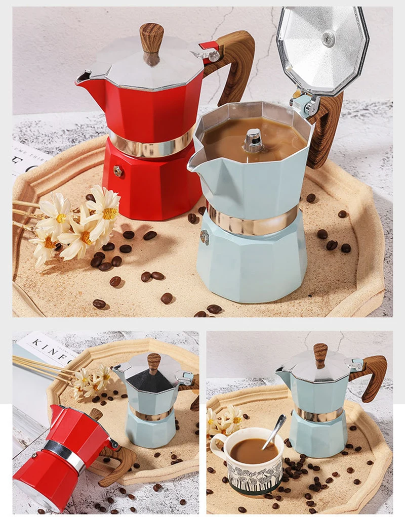 Moka Pot итальянская кофейная машина эспрессо алюминиевый гейзер Кофеварка чайник латте плита Классическая кофейная посуда инструменты для кофе