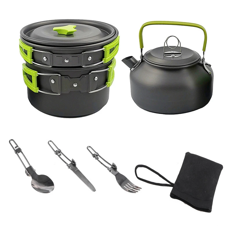 3 шт. кухонная утварь для кемпинга, уличный чайник для приготовления пищи, посуда для пикника, чайник, кастрюля, сковорода со складным ножом, вилка, ложка