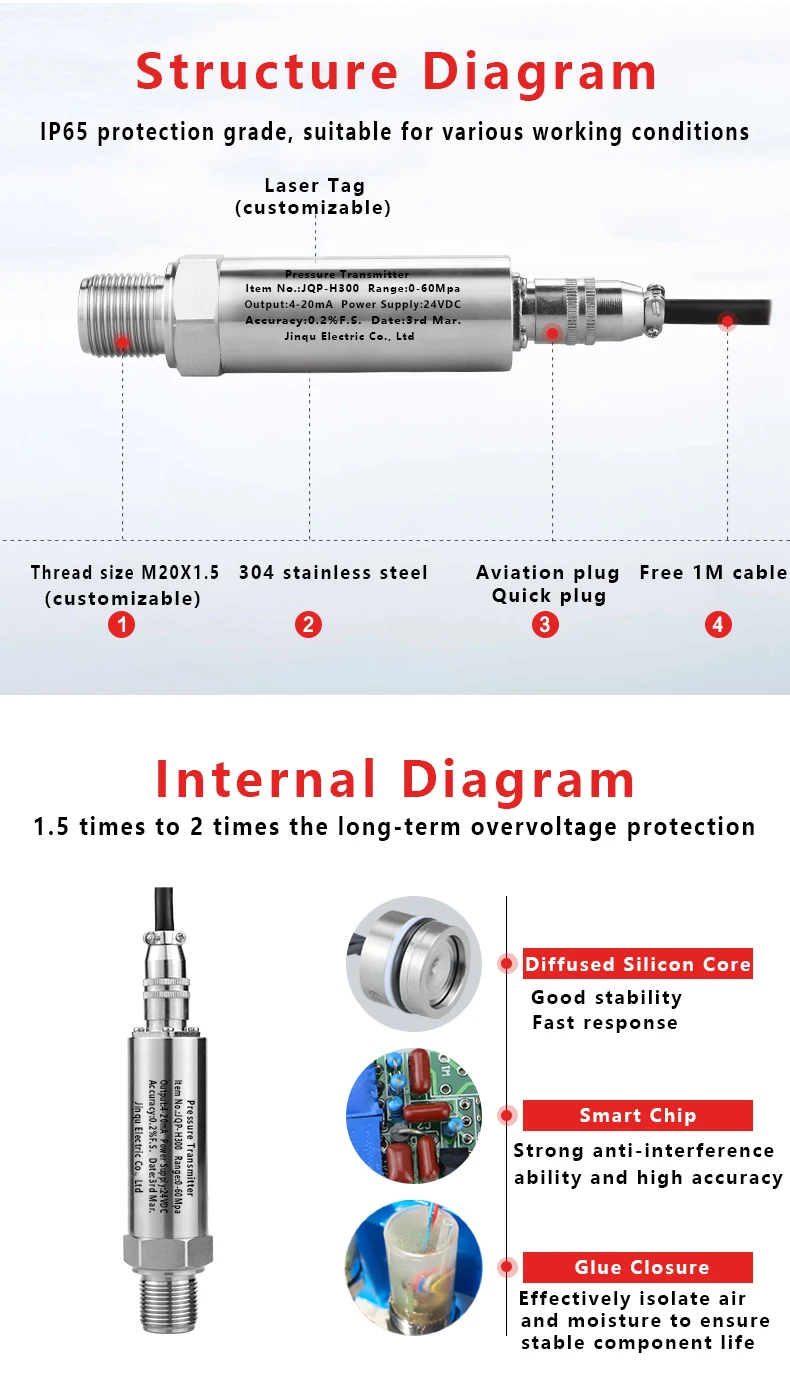 Размер резьбы: M20X1.5, выходной сигнал: 4-20mA, источник питания: 24VDC