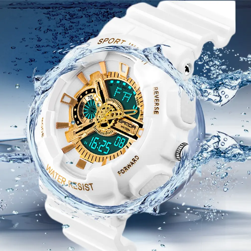 Водонепроницаемый чехол для часов из АБС-пластика и ремень из полиуретана делают часы более прочными.