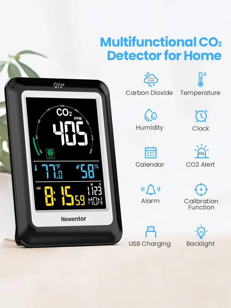 1. Высокоточный датчик CO2: ведущий в отрасли чип обнаружения CO2 обнаруживает в реальном времени, является ли уровень CO2 чрезмерным, это может напомнить нам о своевременной вентиляции, чтобы жить в комфортном состоянии воздуха.