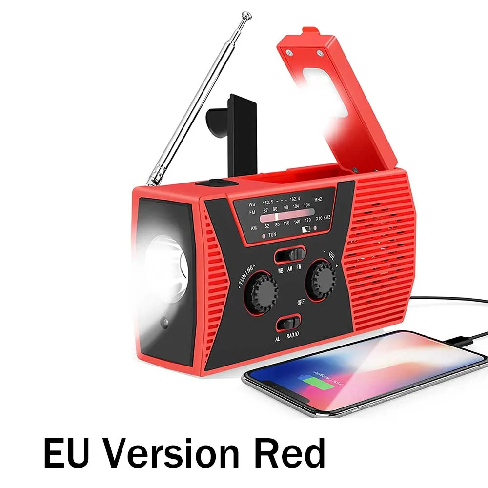Портативные многофункциональные аварийные радио солнечные погодные радиостанции с ручной рукояткой NOAA/AM/FM Разъем для наушников сигнальная лампа для чтения 2000 мАч Внешний аккумулятор для наружного зарядного устройства снаряжение для кемпинга инструмент для выживания Версия ЕС/США