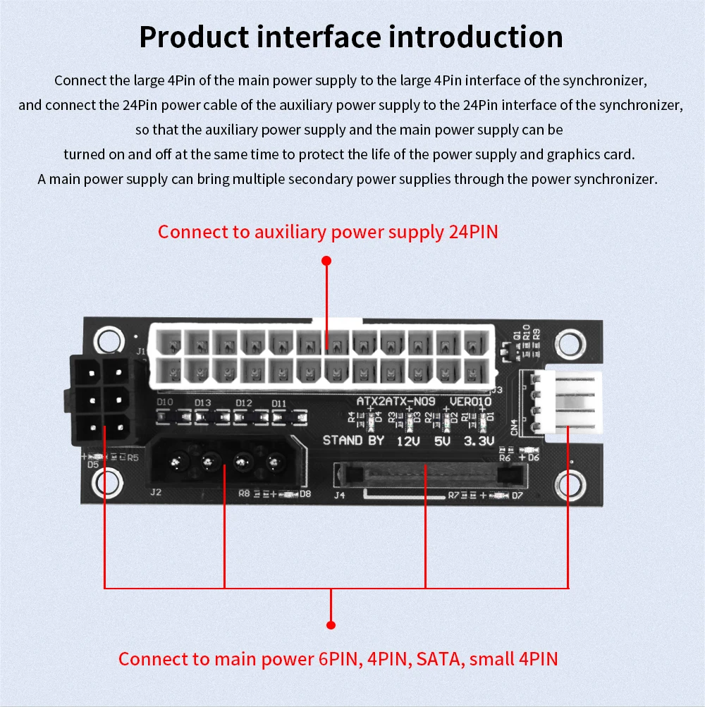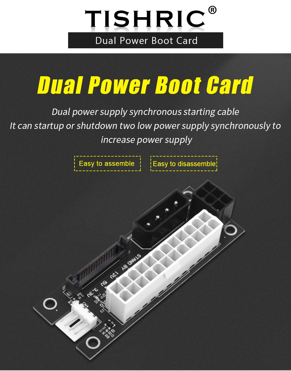 TISHRIC 3 интерфейса Add2psu для BTC Mining 24Pin для 4Pin/6Pin/SATA Molex Dual PSU блок питания Синхронизация адаптер карта ATX 2ATX