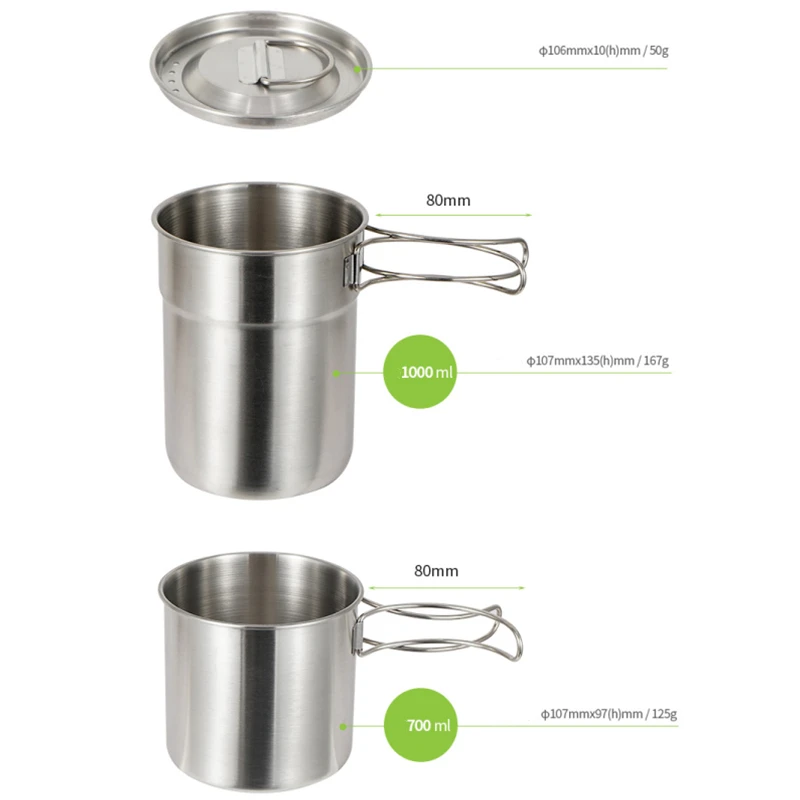 2 шт., чашка для кемпинга из нержавеющей стали, чашка для готовки, кофейная кружка, складная походная посуда для кемпинга, посуда для пикника