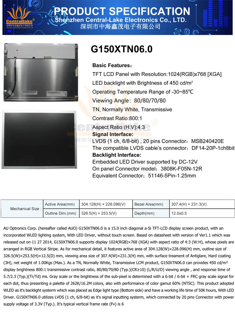 Элементы этой ссылки включают в себя продукты как удар: 1 шт.-ЖК-панель (модель: G150XTN06.0) Материнская плата 1 шт. (модель: AP3128-A) 1 шт.-LVDS кабель (Длина: 250 мм) 1 шт.-светодиодный провод с подсветкой (длина: 350 мм) Не включает в себя: источник питания; Модуль 4G