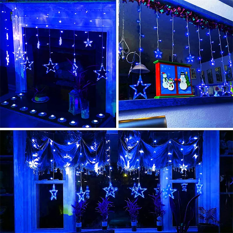 Our LED curtain lights will present you wonderful scenes with 12 twinkling star ornaments (6 large ornaments and 6 small ornaments). It is the perfect decoration for Christmas, Halloween, parties, camping, weddings, birthdays, holidays and other occasions