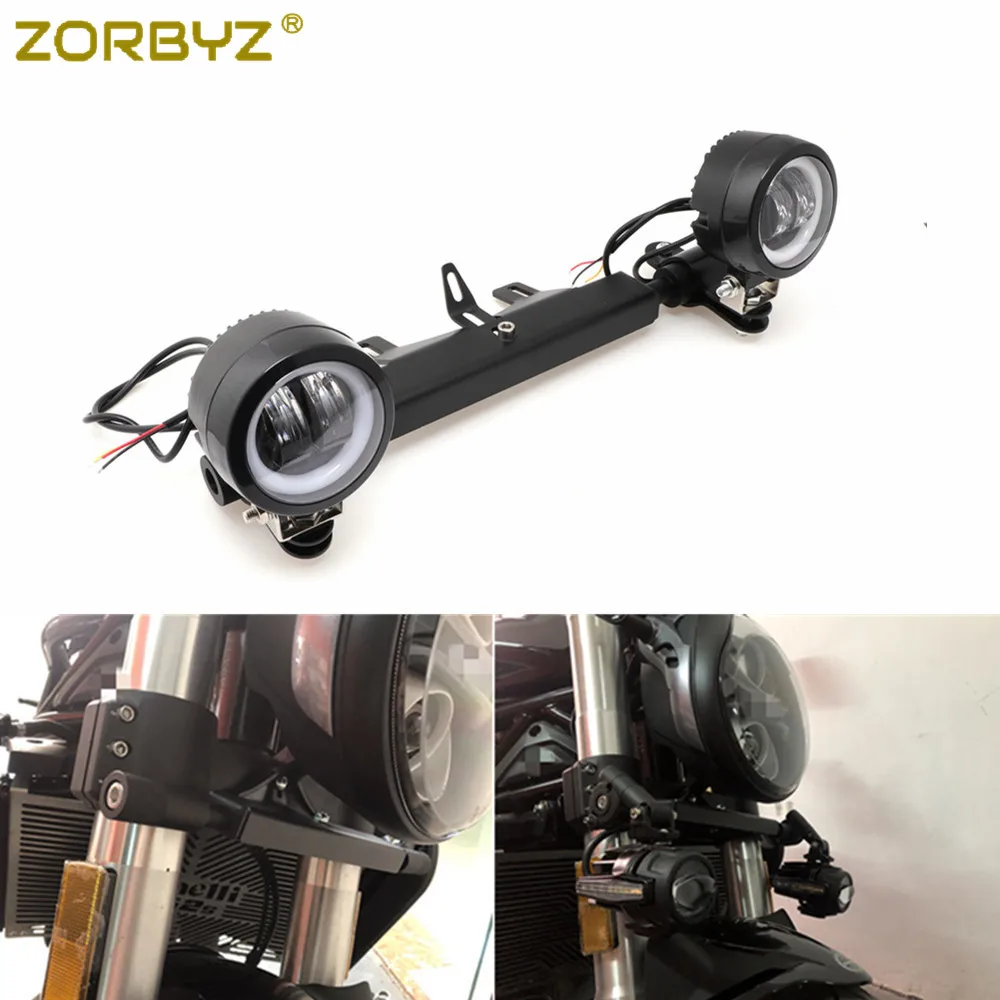 ZORBYZ Motorcycle Black LED Angel Eye Halo Ring Passing Spot Fog Light Mounting Bracket Adapter For Benelli Leoncino 500 752s