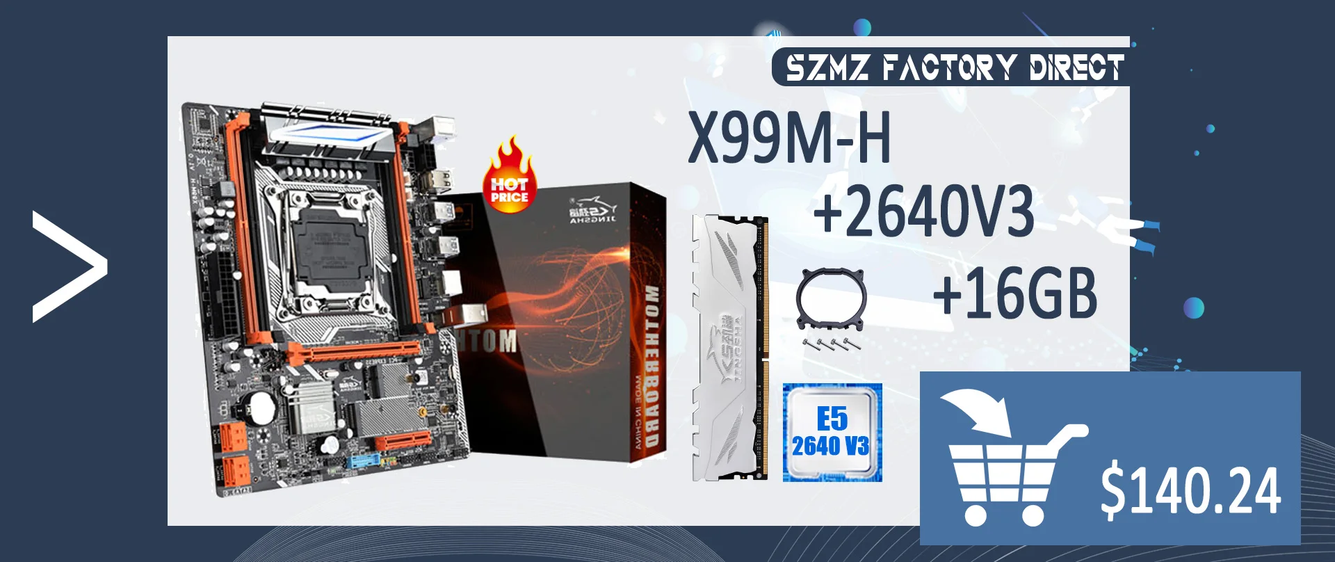 Посылка включает в себя: материнская плата X99M-H * 1 + E5 2620 V3 CPU * 1 + DDR4 8GB 2666mhz PC * 1