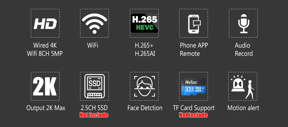 Поддержка проводной 8CH 8MP/4K камеры s, Wifi 8CH 5MP камеры