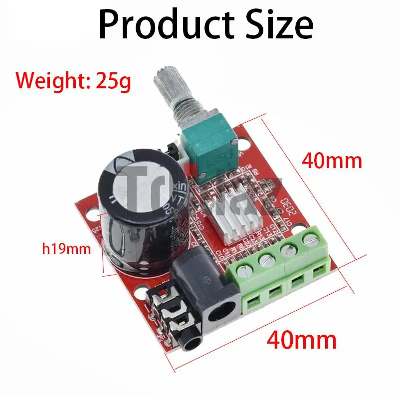 Размер платы: длина 40 мм x ширина 40 мм x Высота 19 (за исключением выступающих частей, таких как потенциометр громкости)