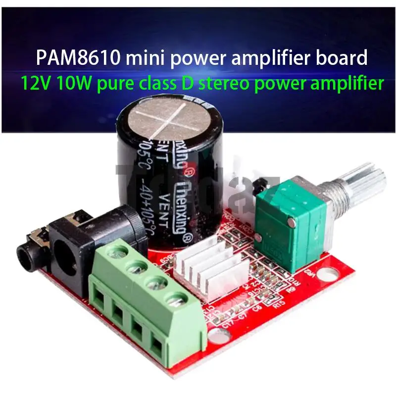 Мощность PAM8610 (10 Вт) больше, чем у PAM8406 (6 Вт), который может управлять более мощные динамики. Измеренная Плата усилителя мощности может управлять двумя динамиками мощностью 25 Вт.
