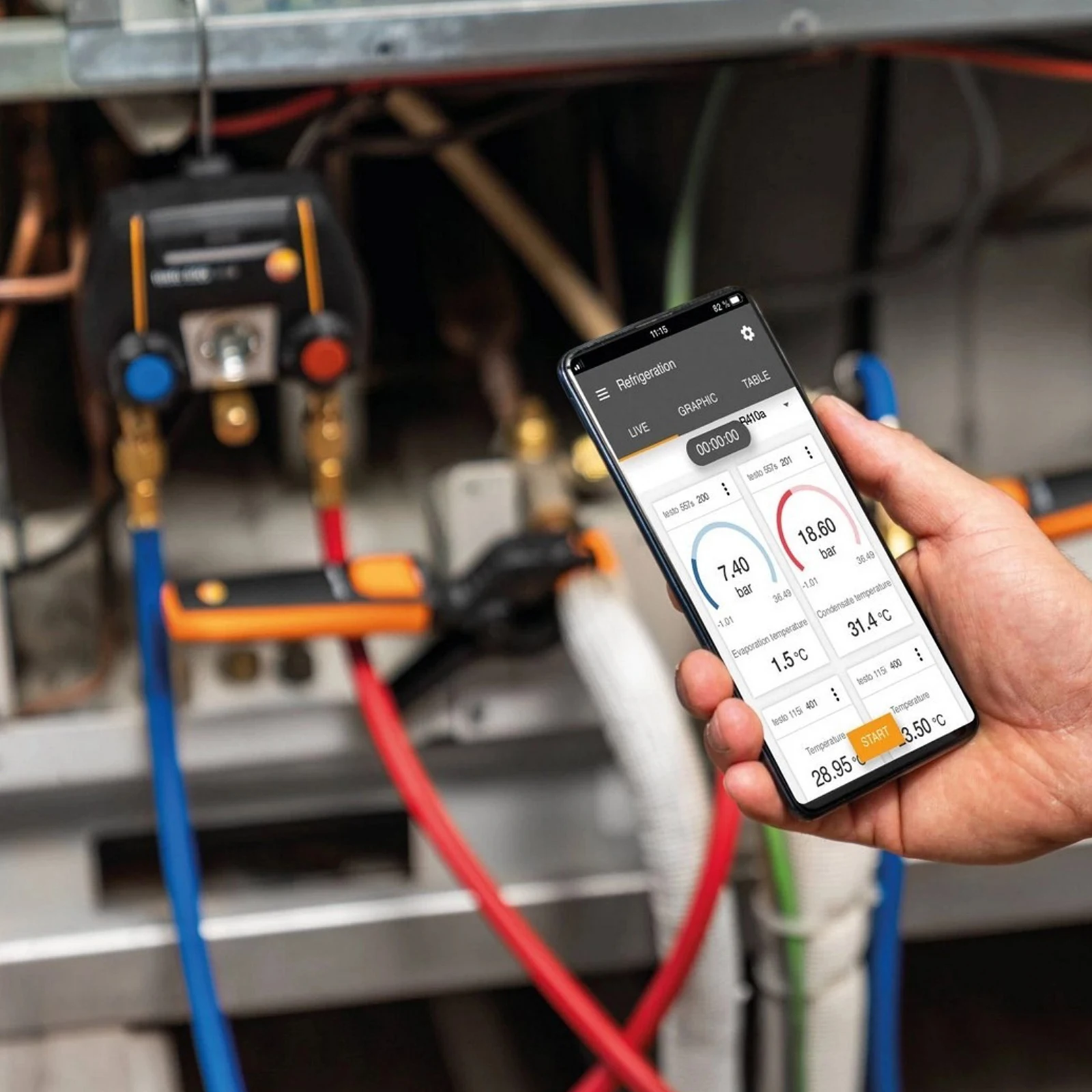 4. Приложение testo Smart: полностью Контролируйте свои задачи по обслуживанию и обслуживанию с помощью приложения и смартфона или планшета, наслаждайтесь четко представленными результатами и цифровой документацией, устанавливайте собственные избранные и всегда обладайте последними хладагентами.