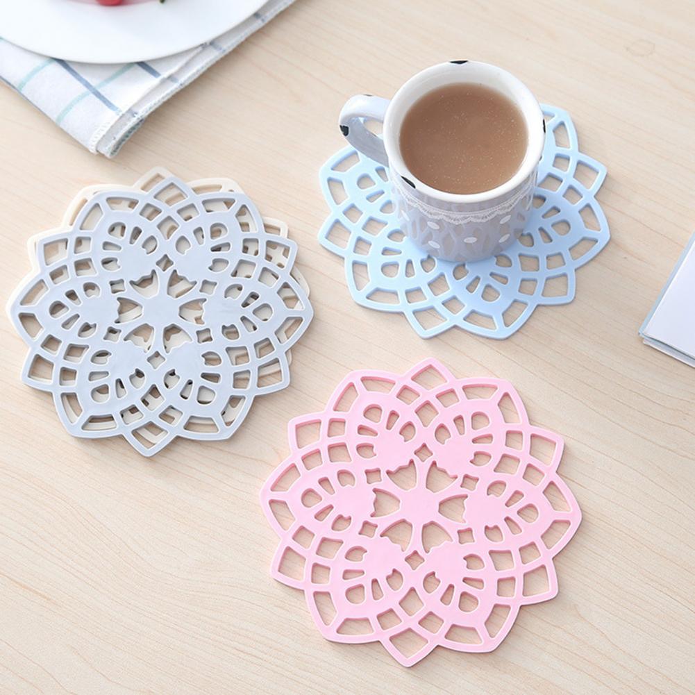 Чашки Coaster утолщенный полый дизайн TPR резиновая уникальная форма цветка миска коврик бытовые принадлежности
