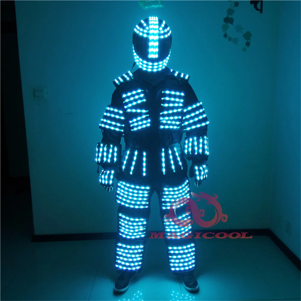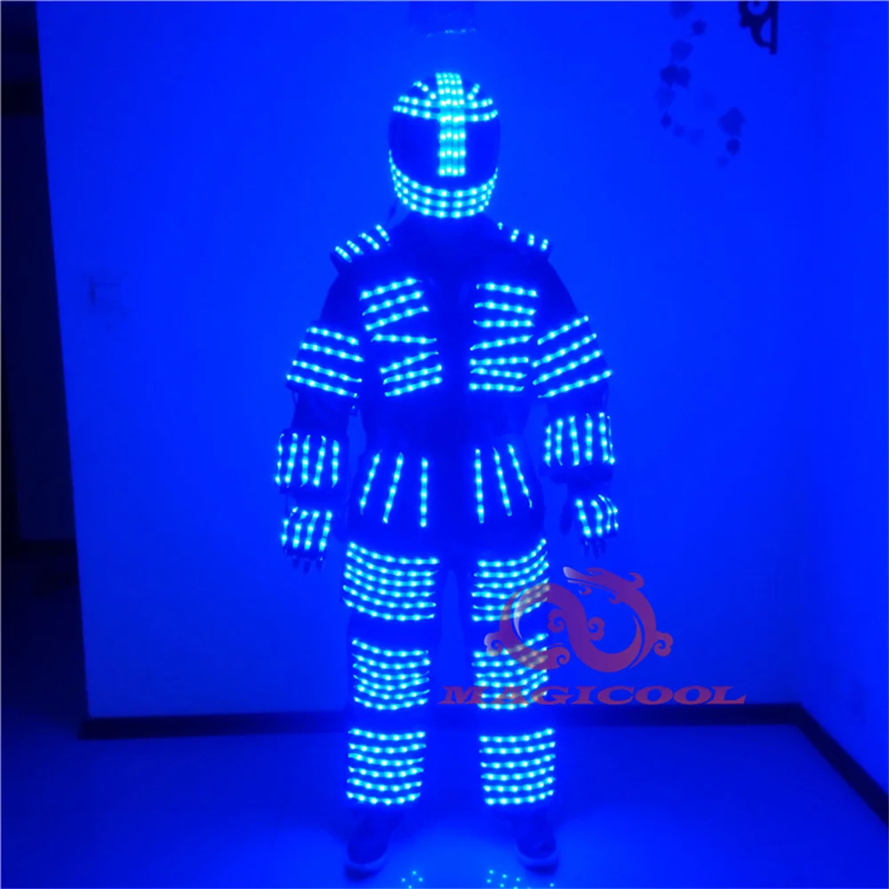 Светодиодные костюмы роботов используются для выступлений на сцене и танцев