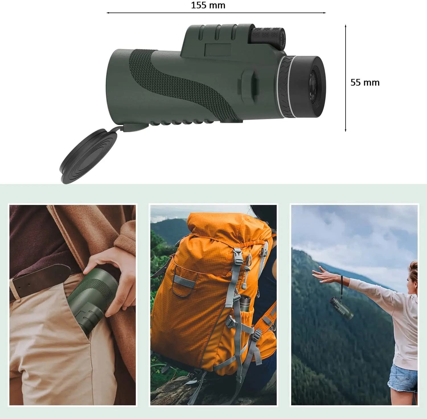 Монокуляр высокой мощности всего 155 мм, очень компактный и достаточно, чтобы положить в карман, удобно носить с собой везде и в любое время. Широкое поле зрения, позволит вам наслаждаться пейзажем перед вами до содержания вашего сердца.