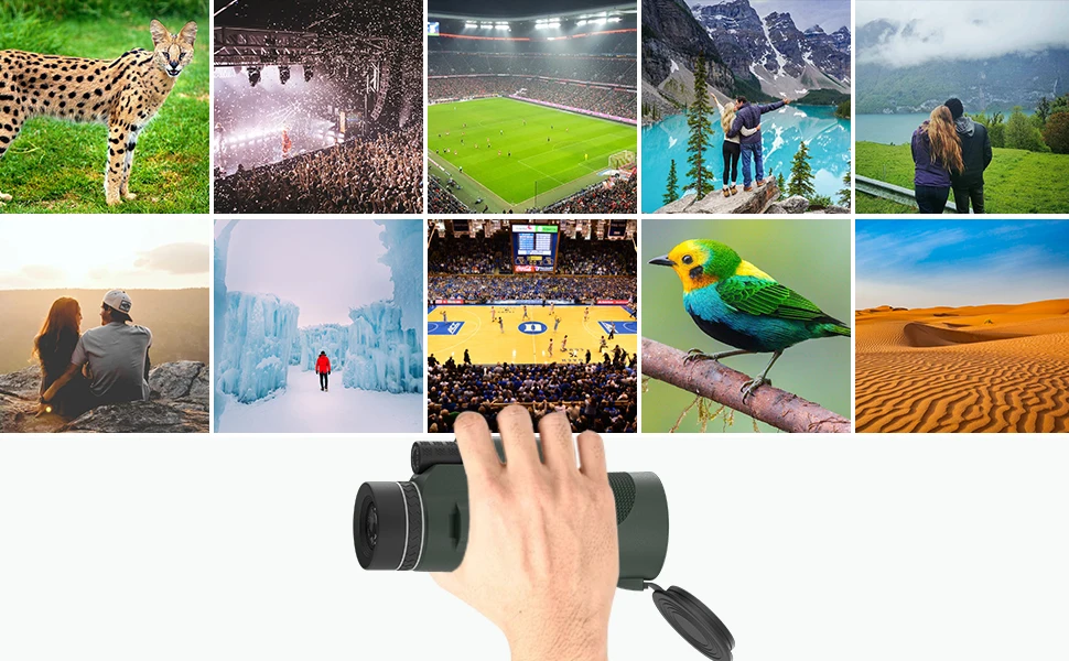 Большой BAK-4 Призма внутри, Полностью многослойное зеленое покрытие объектива и синий окуляр с покрытием-усиливает функцию монокуляра, делает ваш вид ярче, четче и обеспечивает четкие изображения.