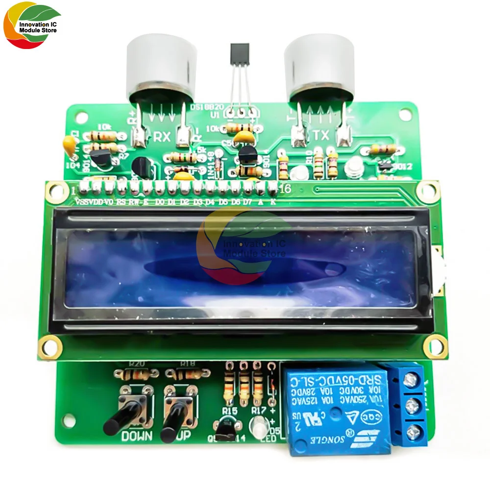 Описание функции: чтобы измерить расстояние в 3-150 см плоскости, можно установить расстояние тревоги. Когда измеренное расстояние меньше установленного расстояния тревоги, реле будет действовать. ЖК-экран отображает расстояние измерения, расстояние сигнализации, температуру тока и скорость тока звуковой волны.