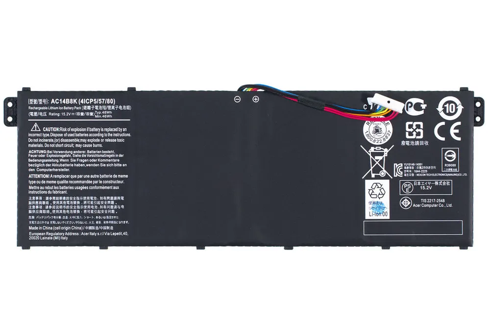 Напряжение аккумулятора 15,2V Номер модели Acer Aspire E5-721 Название бренда CHIP Происхождение Китай Тип Литий-ионный Совместимая марка Acer Упаковка Давнешний вид товара