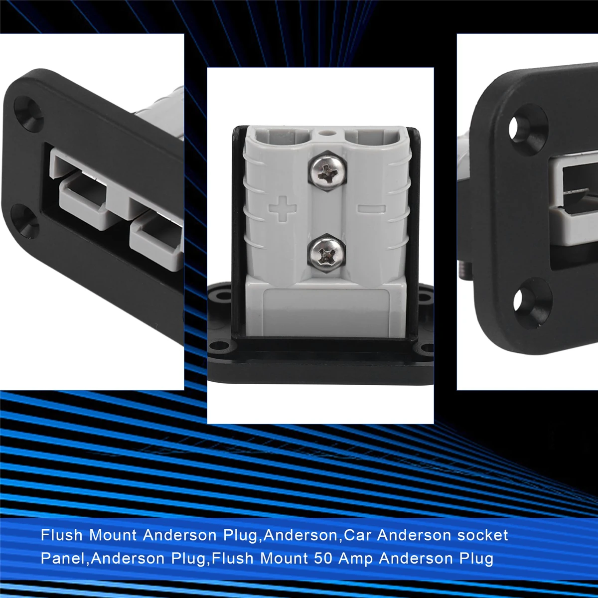 1.Flush mounting bracket with a recessed 50A Anderson connector for mounting into trims and panels.