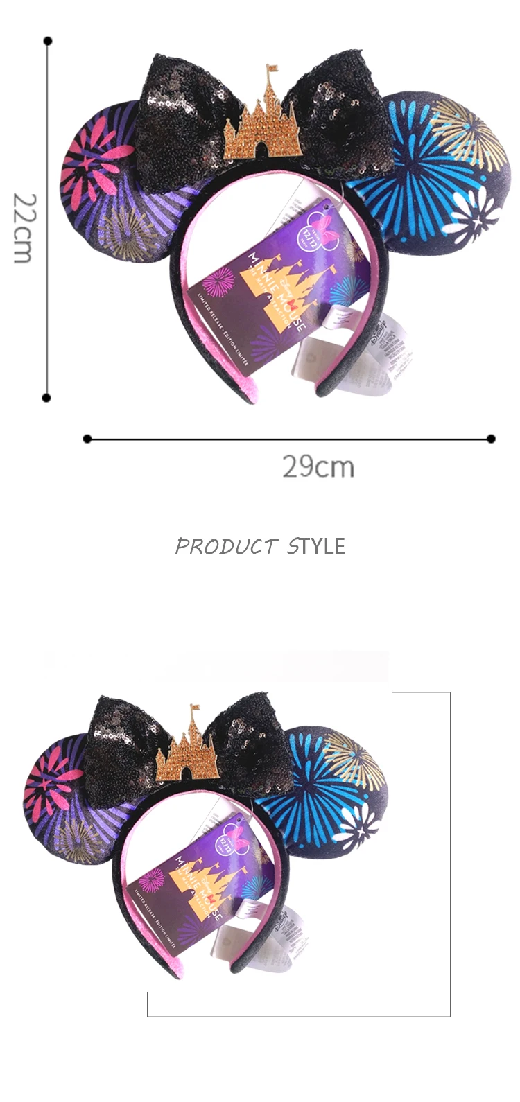 1 шт. платье принцессы-Русалочки с уши Минни Маус лента для волос большая с блестками бантами ушками; Повязка для костюма Косплэй плюшевые игрушки для взрослых/детская лента для волос в подарок