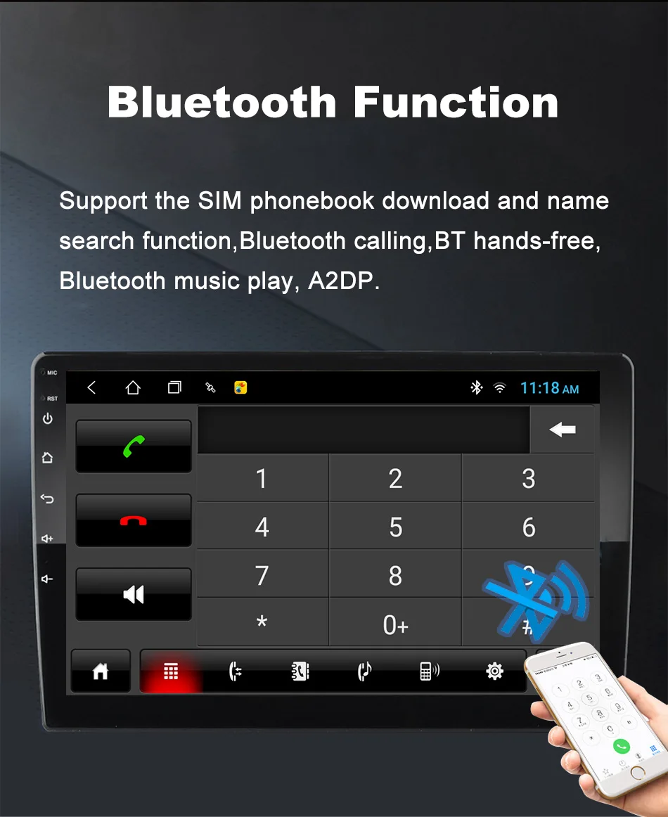 5.Bluetooth 4.2 support hands-free, phone book and BT music