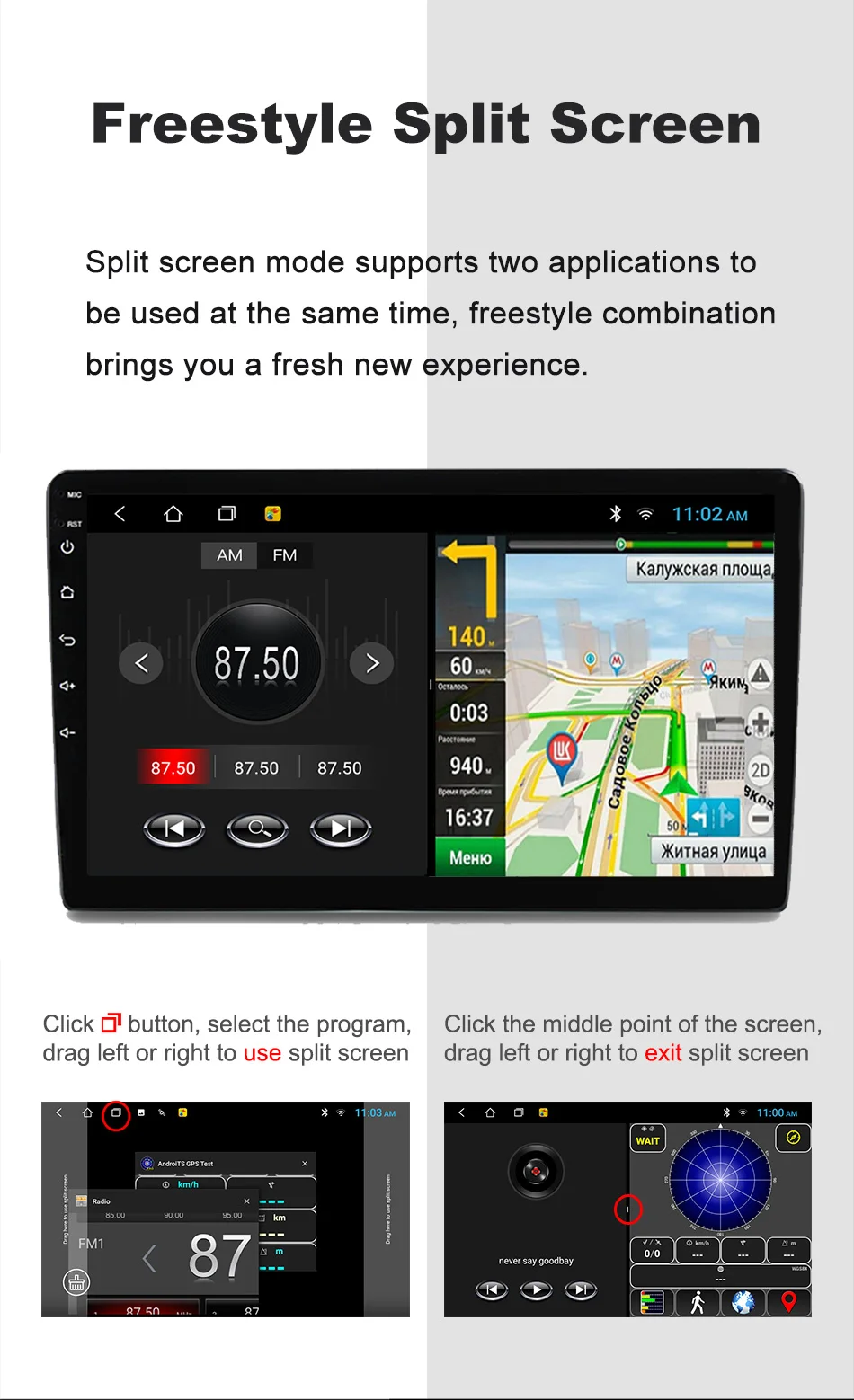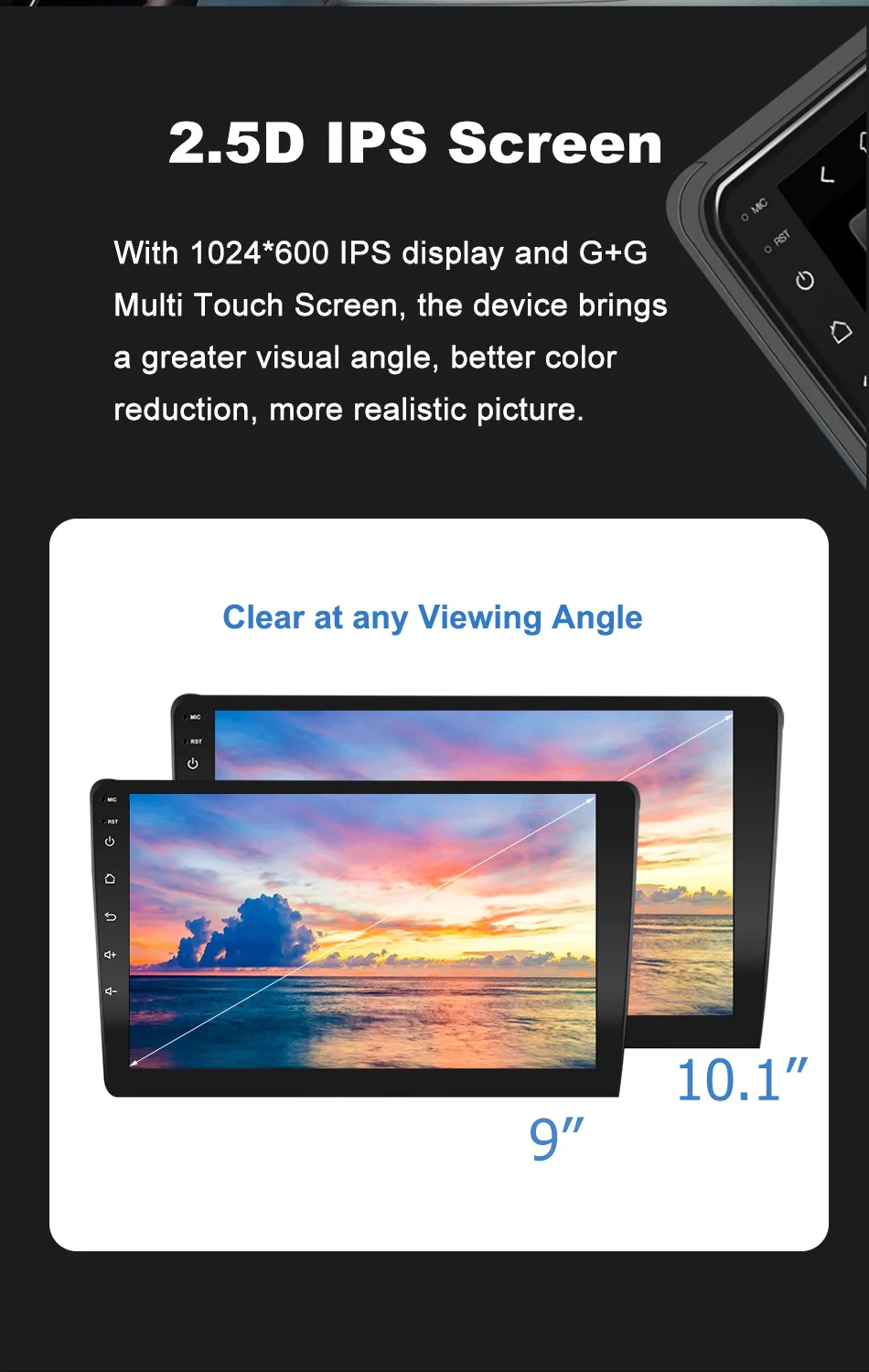 2.1024*600 IPS display with 9 inch touch screen, support Split Screen