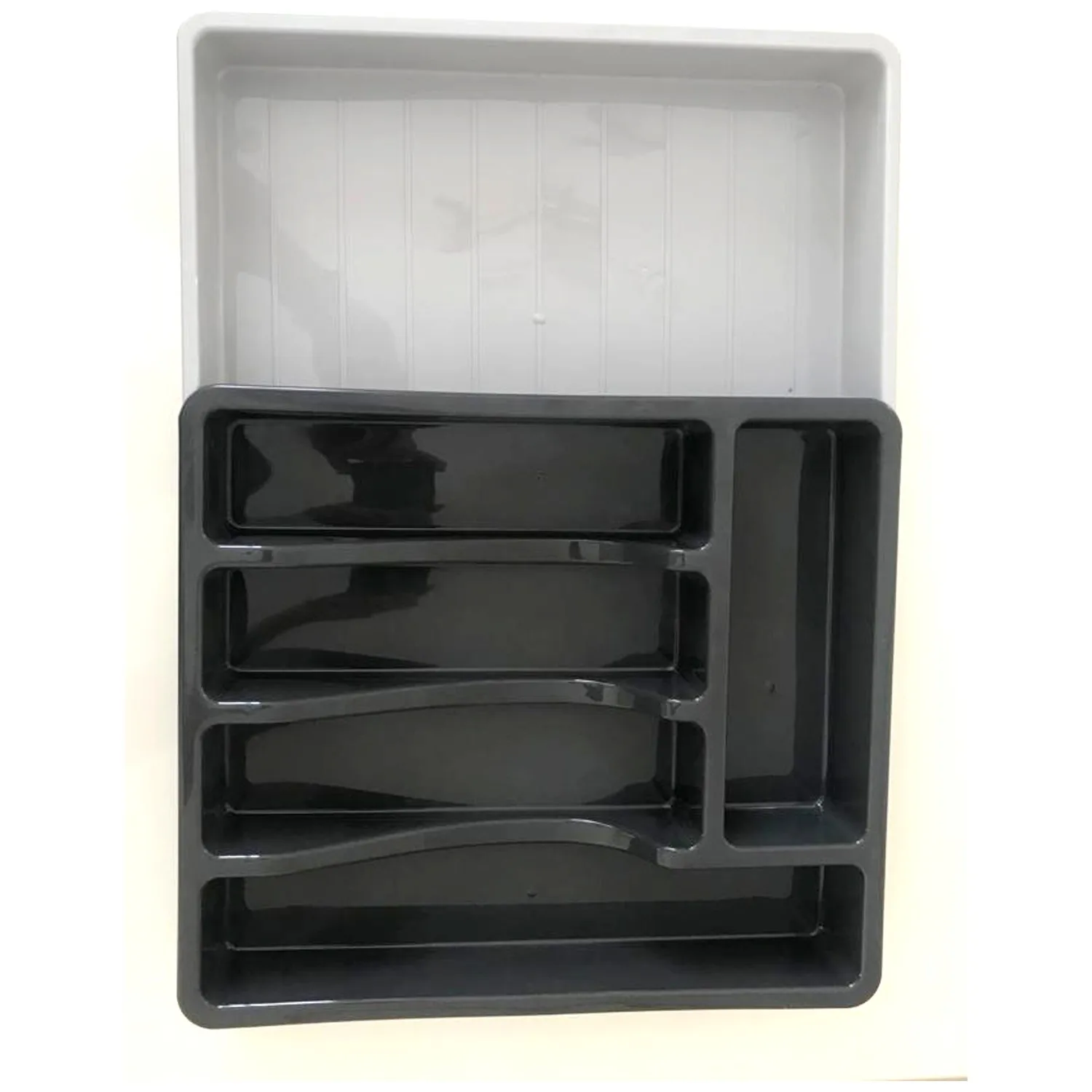 Скользящий органайзер для столовых приборов используется для столов, столовых ложек и т. д., которые не помещаются в миски стандартного размера. Он предназначен для укладки кухонной утвари в ящиках упорядоченно.