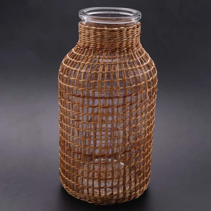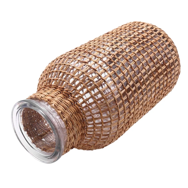 Акция! Соломенная стеклянная ваза для цветов, японский цветочный горшок в скандинавском стиле, креативная Цветочная корзина для воды