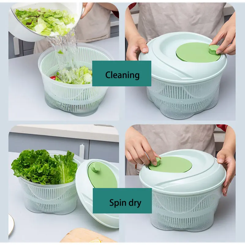 Lettues высыхает за секунду и останавливается в любое время с помощью кнопки остановки, вход и выход воды позволяют налить воду, не снимая крышку, сохраняя руку от холодной воды зимой