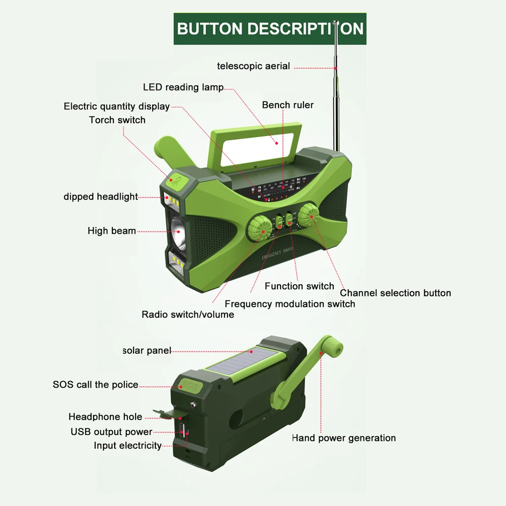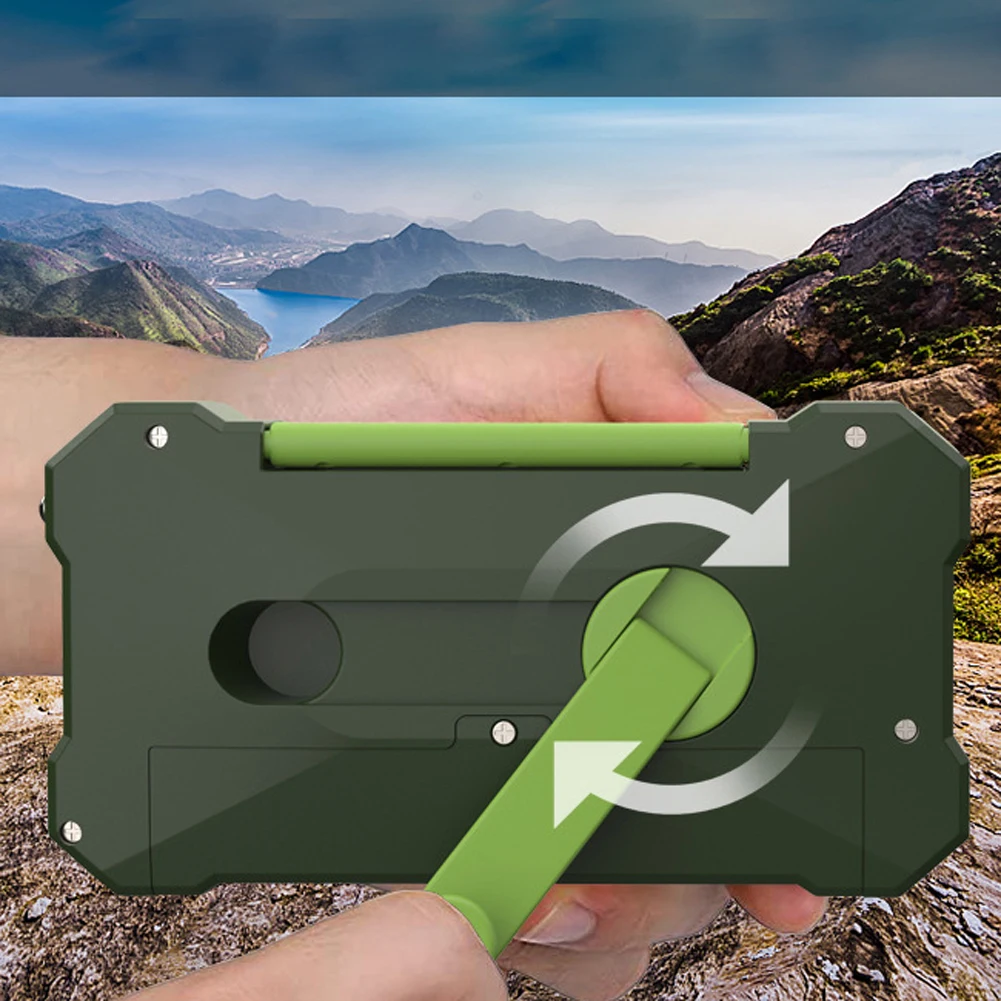 Этот многофункциональный электрический генератор изготовлен из качественного АБС-материала, ударопрочного и водонепроницаемого, подходит для использования в сложных условиях. Частотная Модуляция радио, Поддержка 520-1710 кГц AM сигнала, 87-108 МГц F-M сигнала, и 162,400-162,550 МГц WB (NOAA) США прогноз погоды singal получение. Аварийный светодиодный сильный светильник флэш-светильник, при помощи использования сильной светильник из бисера, с Фокусирующая линза, яркие, с большими освещения диапазоны и яснее видения. Он может использоваться в качестве аварийного источника питания для перезарядки мобильных телефонов с выходом высокой мощности USB, а также может заряжать другие цифровые продукты. Попробуйте.