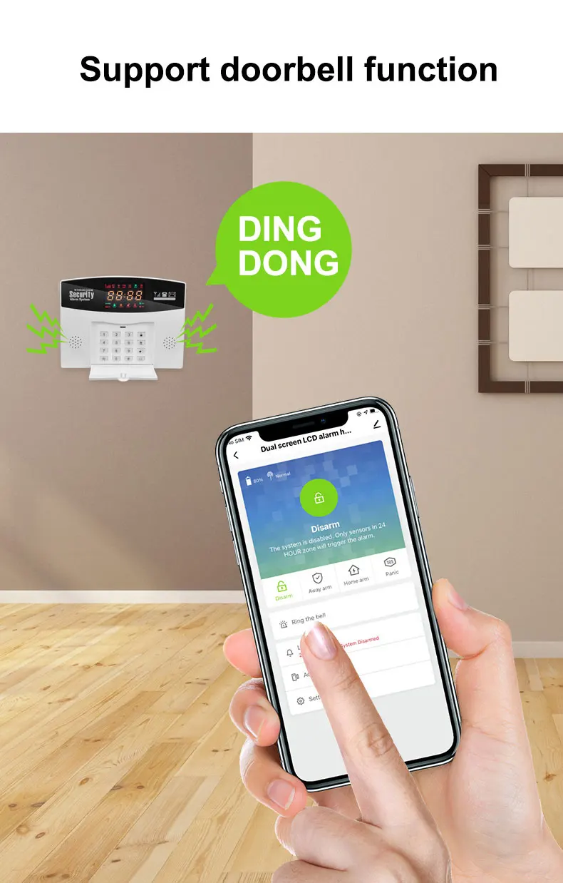 Нет необходимости устанавливать дополнительную кнопку дверного звонка на стене. В приложении есть кнопка дверного звонка, вы можете нажать на дверной звонок в любое время и в любом месте.