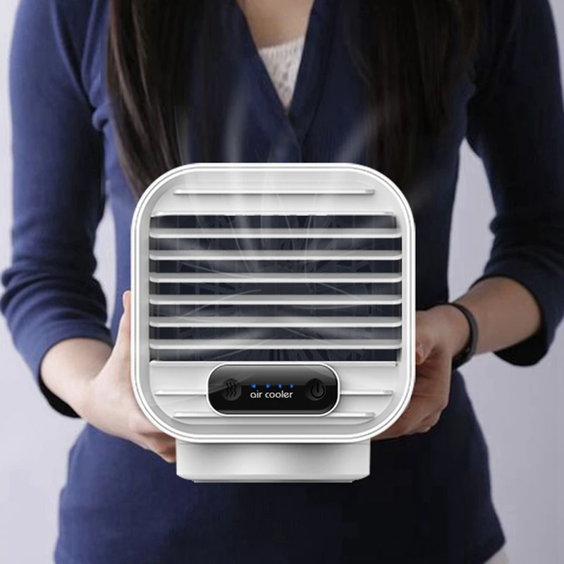 [4-в-1 воздушный охладитель] Портативный мини воздухокондиционер вентилятор принимает не вредит экологии охлаждения, очистки и увлажнения воздуха дизайн. Его можно использовать в качестве настольного вентилятора или увлажнителя, чтобы избежать жаркой погоды и сухого воздуха, и обеспечить вам более комфортное и здоровое личное пространство.