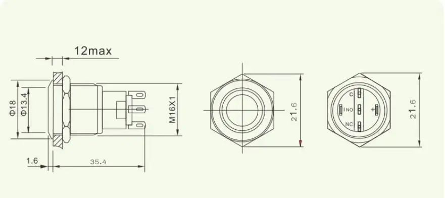 16 мм переключатель из нержавеющей стали