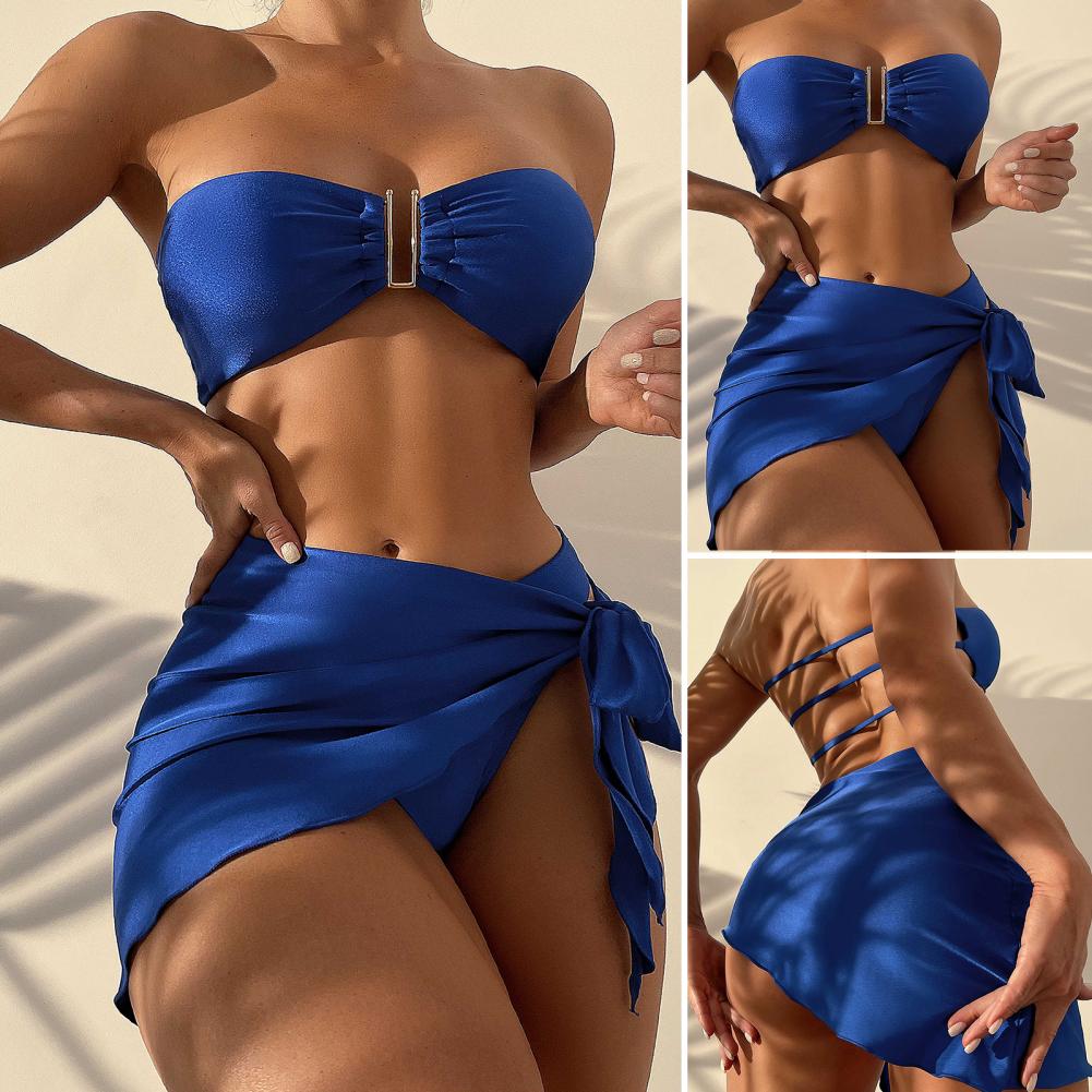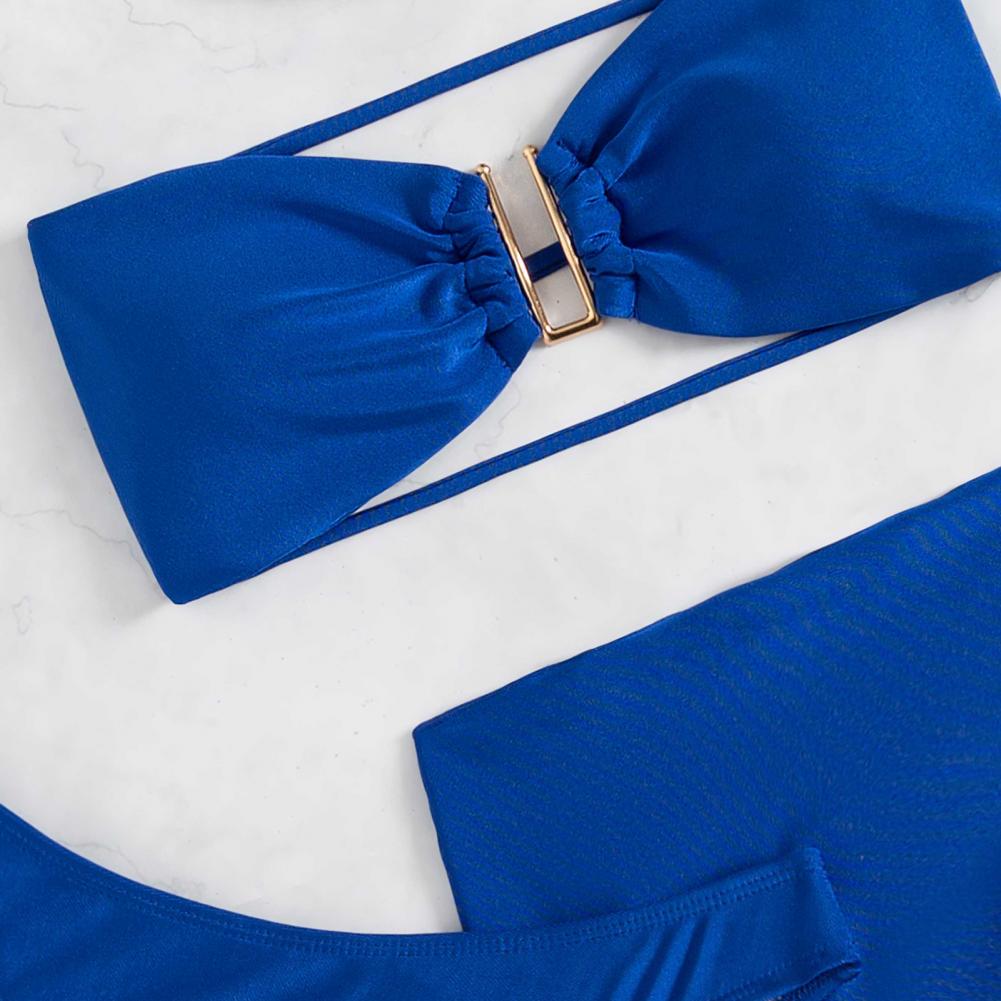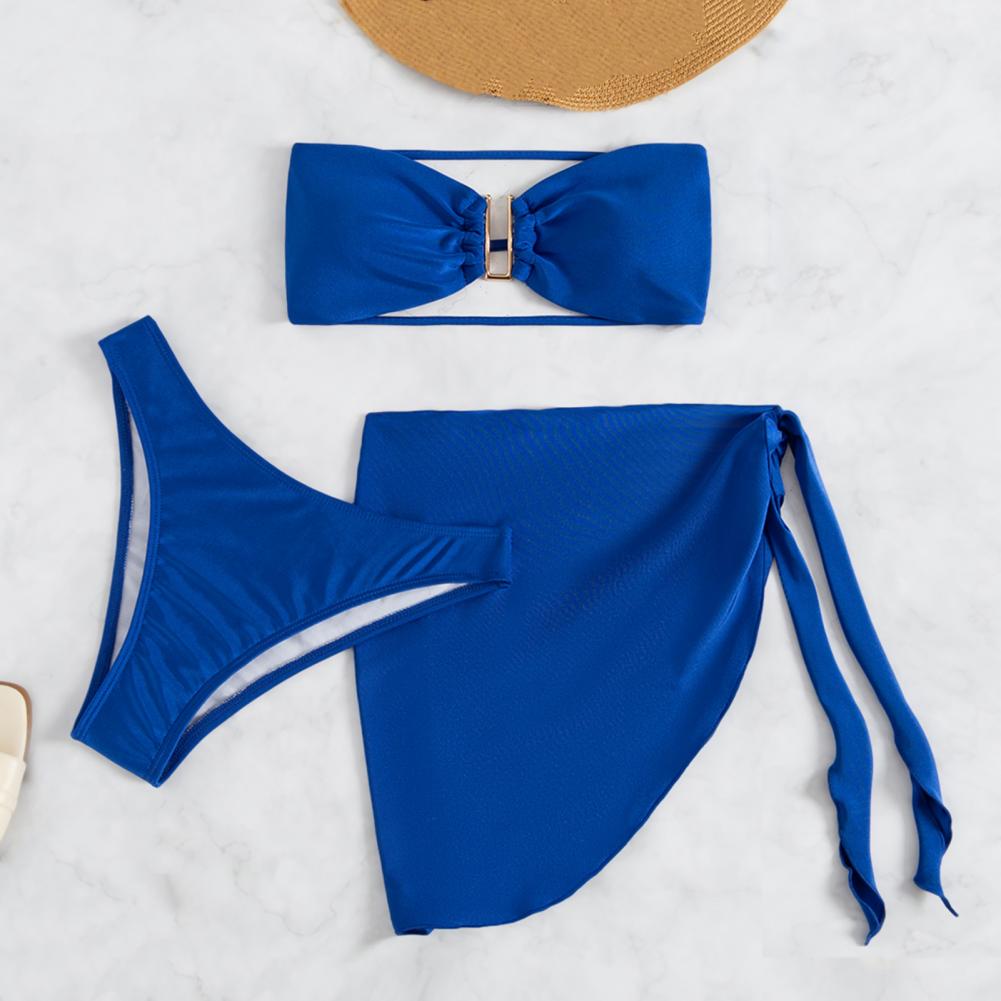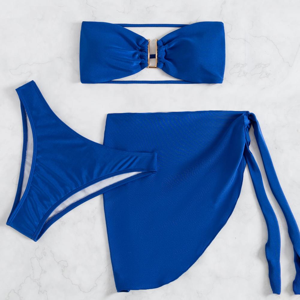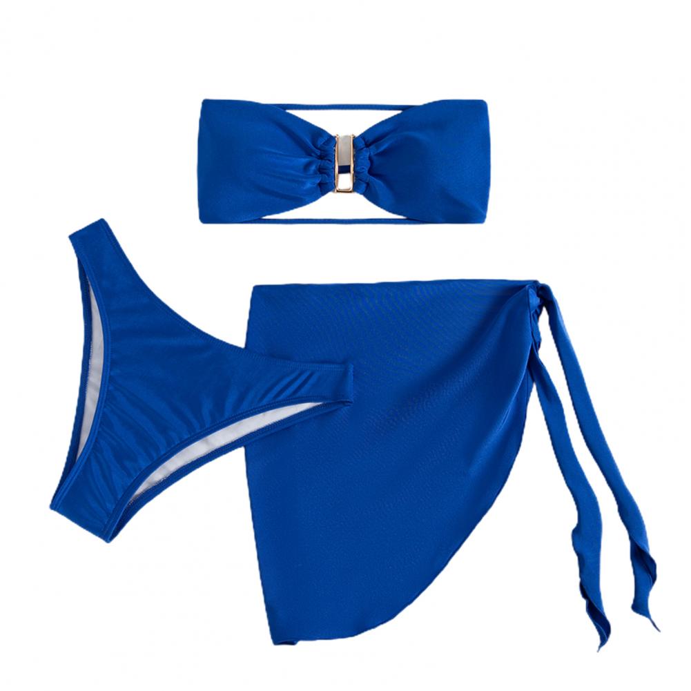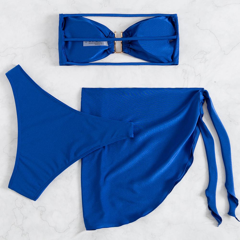 3 шт./компл., летний комплект бикини, сплошной цвет, без спинки, с открытыми плечами, u-образная форма, купальный костюм для спа