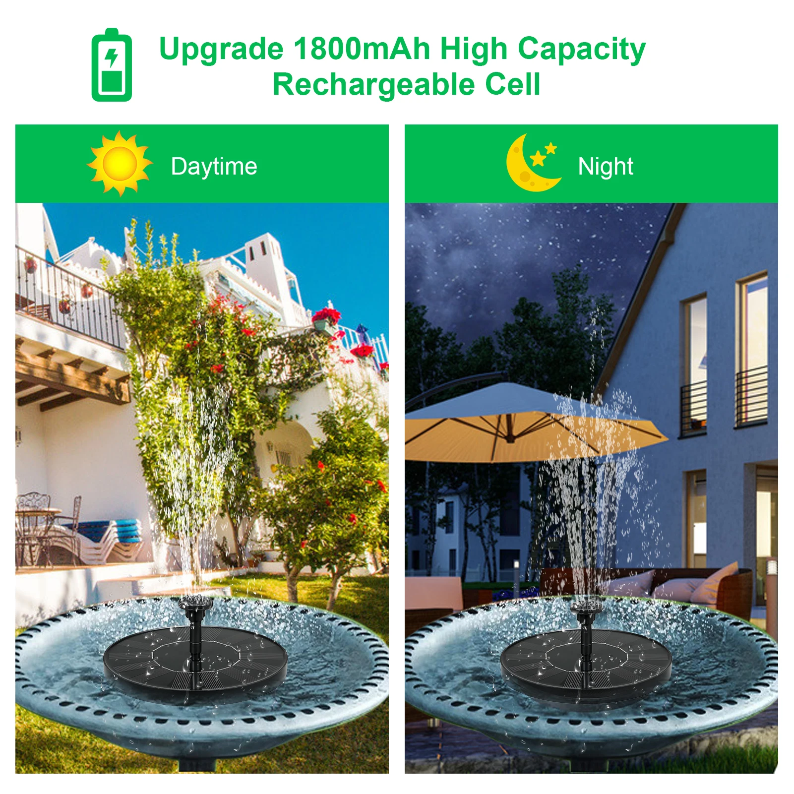 Красочное освещение:Встроенный 7 цветов светодиодный светильник автоматически запускает светильник, когда солнце опускается. (Только тип 3)