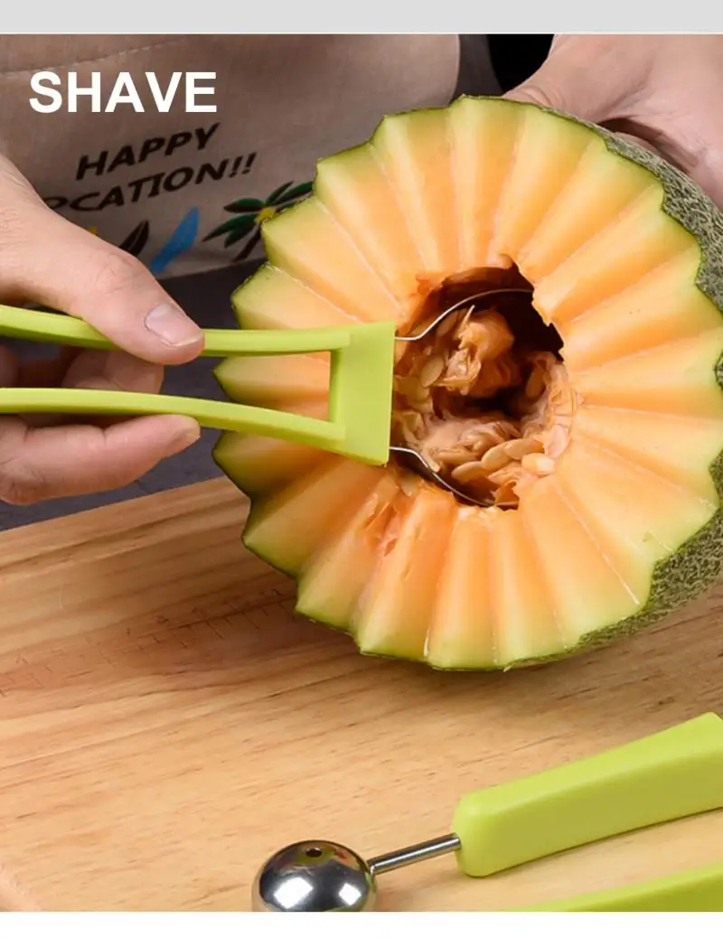 3. [Более широкое применение]: наш нож для арбуза может быть применен для изготовления шаров различных фруктов, таких как арбуз, канталупа, питая, киви и многое другое, вы можете использовать инструменты для резьбы фруктов, чтобы сделать фруктовый салат, который вам нравится, и наслаждаться веселым, которое приносит вам.