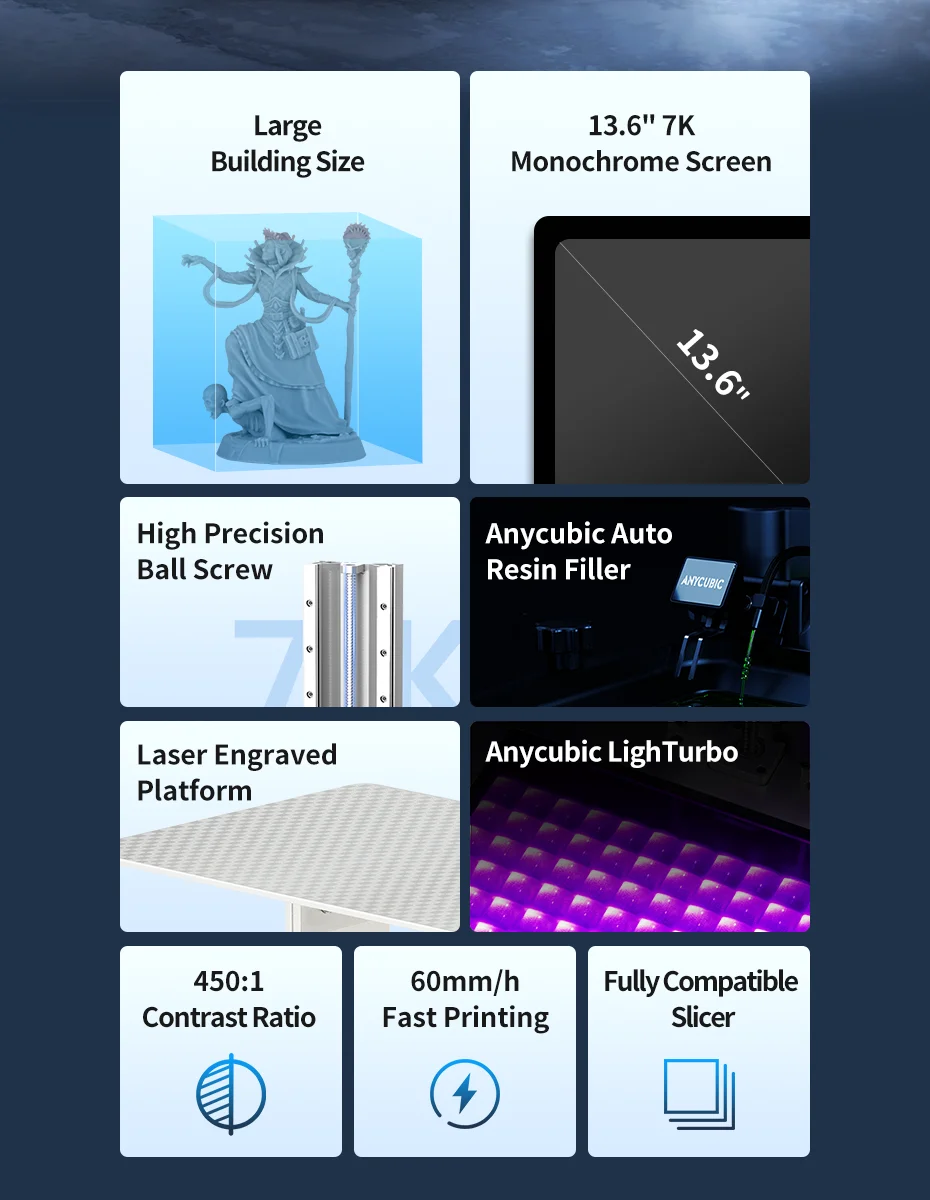 13 "7K Монохромный экран | Высокое разрешение | Anycubic Авто Смола наполнитель