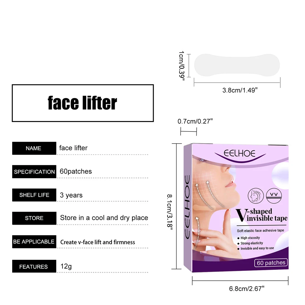 [Особенность 1]: водонепроницаемая v-образная лента для макияжа, невидимая, дышащая, подъемная поверхность, подтяжка и подтяжка подбородка [особенность 2]: длительность/до 10 часов, безопасный/физический подъем, отсутствие побочных эффектов, благоприятный для кожи [особенность 3]: анти-аллергический материал водонепроницаемый/Пот масло не влияет на Эластичность/может растягиваться [особенность 4]: Дышите свободно до определенной длины/поры дышат свободно, незаметны/толщина всего 0,02 мм, водонепроницаемость, сильная эластичность и не заставят ваше лицо чувствовать себя туго. [Особенность 5]: Используйте контраст, чтобы немедленно поднять и затянуть кожу и придать ей v-образную форму. Благодаря тонкой и компактной форме лица и красивой форме лица.