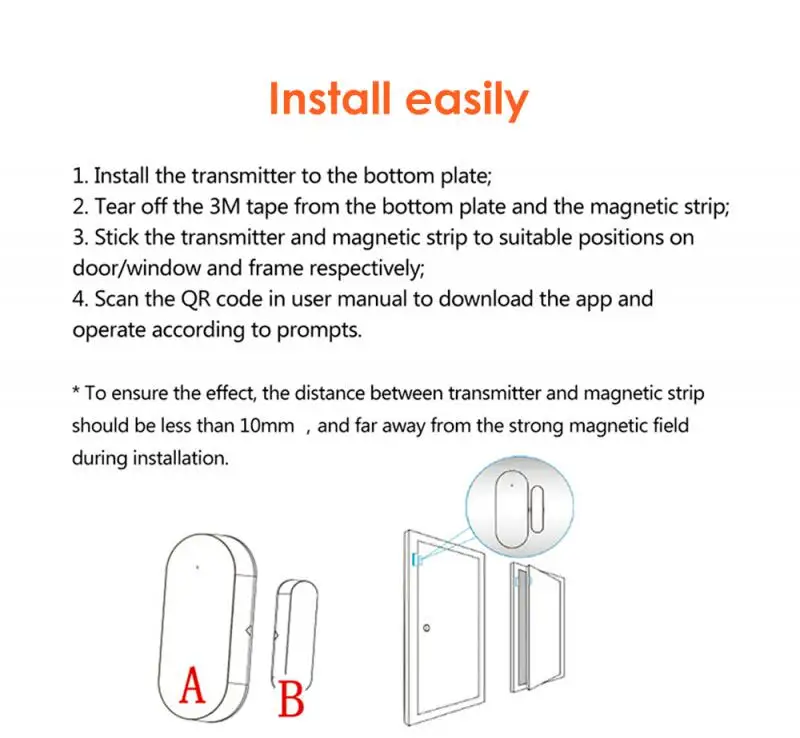 【Обнаружение состояния двери/окна 】когда дверь/Окно открывается или закрывается, устройство срабатывает и нажимает уведомление на телефон.