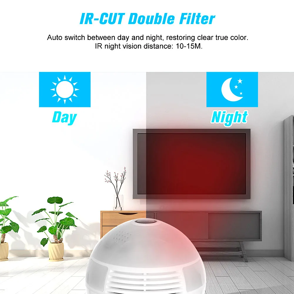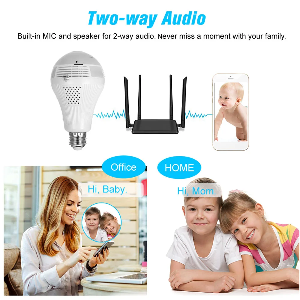 Этот товар является 1080P HD видеозаписью, более жидким и четким, 360 ° полный обзор мини панорамная ip-камера с внешним видом лампы, используется для освещения и записи одновременно. Он также поддерживает ИК ночное видение, и встроенный микрофон, динамик для 2-полосная аудио. Этот продукт очень подходит для использования дома для наблюдения за детьми, ухода за пожилыми людьми и наблюдения за помещением, а также может использоваться в офисе, магазине, фабрике и т. д. Заботитесь о том, что вы заботитесь!