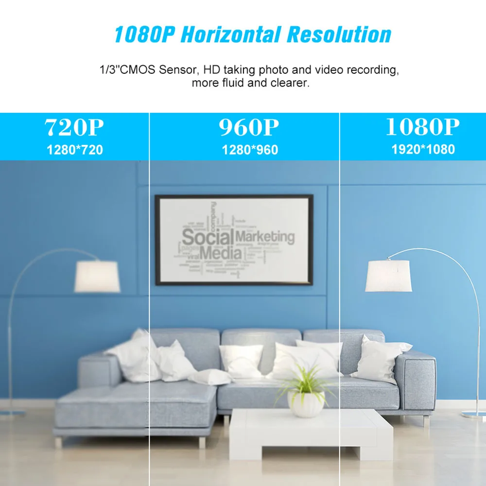 * 1/3 "CMOS сенсор, 1080P HD Съемка фото и видео запись, более плавный и четкий.