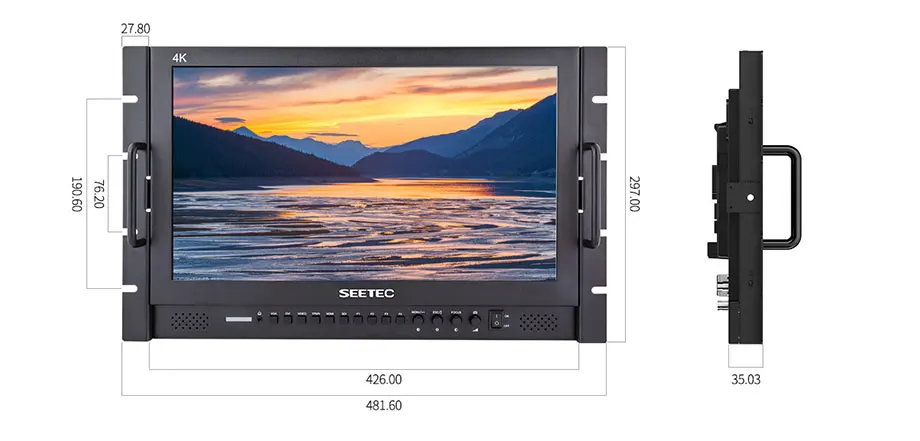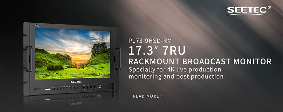 SEETEC P173-9HSD-RM is the full HD rack mount broadcast monitor with 3G-SDI, HDMI supports up to 4K@30Hz. Adopts Rec.709 color standard, display vivid images and professional effects. Rugged and durable aluminium housing. Its equipped with VESA standard, can be rack-mounted but also wall-mounted installation. P173-9HSD-RM is the perfect professional monitor for any broadcast facility, mobile broadcast truck or even fly kit.