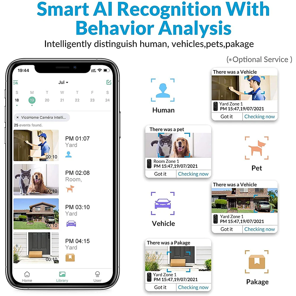 Смарт-камера системы видеонаблюдения беспроводная наружная определит людей, транспортных средств, домашних животных. С передовой технологией AI вы можете классифицировать объекты и выбрать один или несколько для получения мгновенных оповещений. Наружная беспроводная камера безопасности отправляет уведомления только при обнаружении целевого объекта и фильтрует бесполезную информацию.