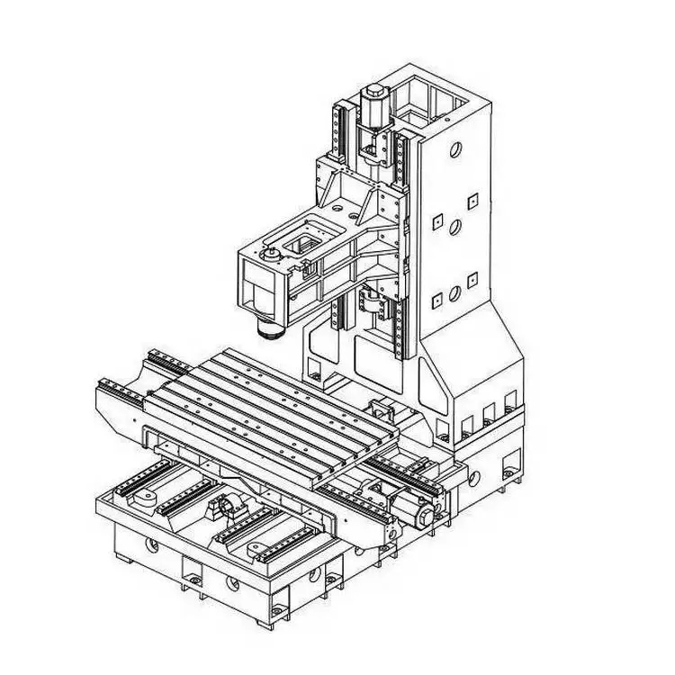 Включает в себя чугунное литье деталей, 3 оси железных дорог и шариковый винт и BT40 8000 об/мин с ременным приводом шпинделя. Не включает корпус.