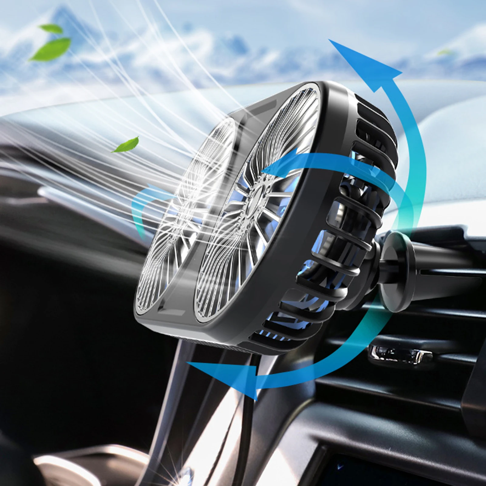 Это автомобильный вентилятор с питанием от USB. Вентилятор будет работать непрерывно и мощно внутри вашего автомобиля, обеспечивая прохладный ветер и выдувание запахов. Вентилятор с низким уровнем шума не мешает обзору, позволяя вам фокусироваться на дороге вперед.