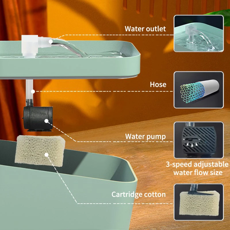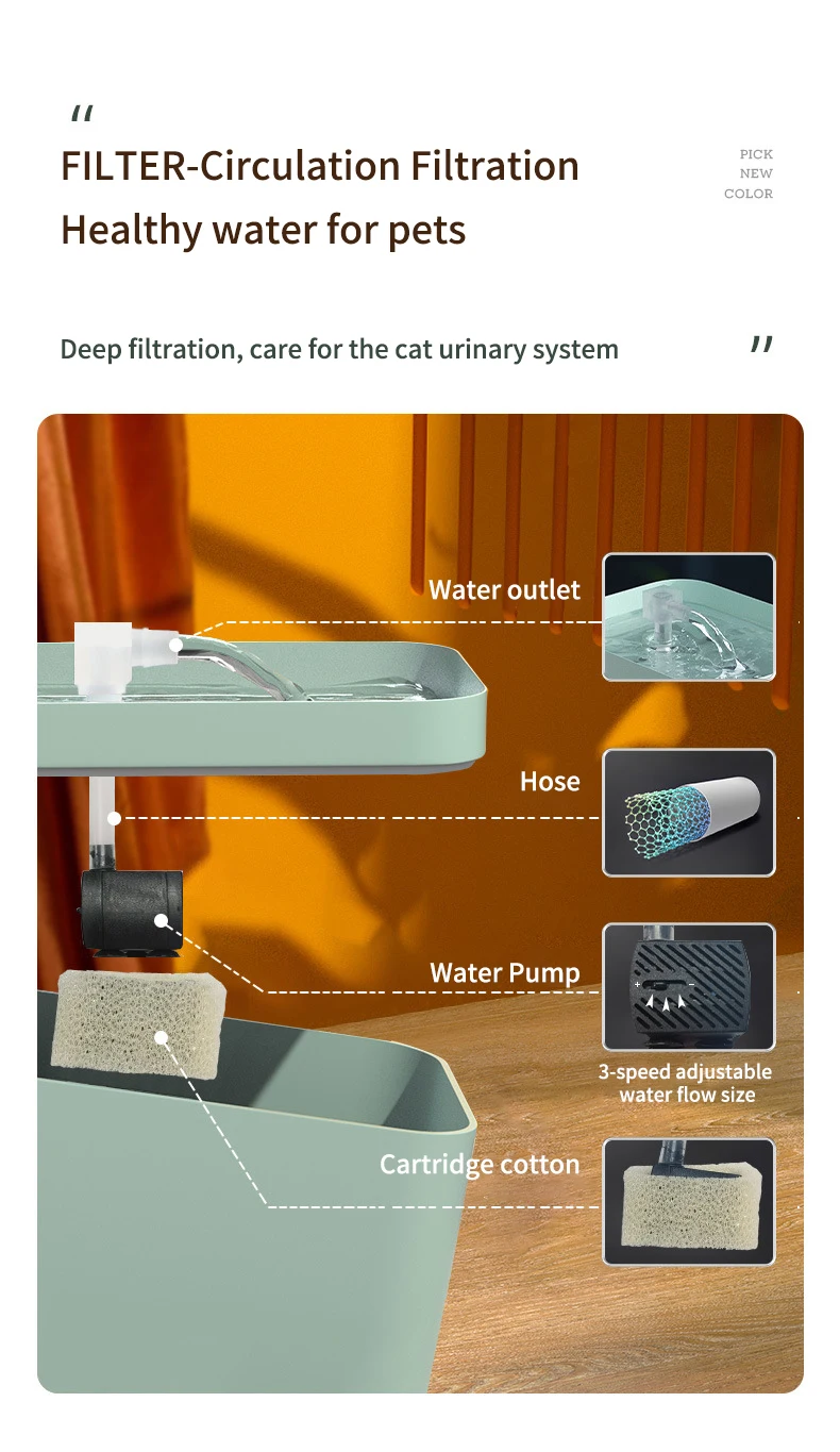 -3 режима скорости потока воды обеспечивают чистую водопроводную воду, чтобы сделать вашего питомца счастливее и здоровее.