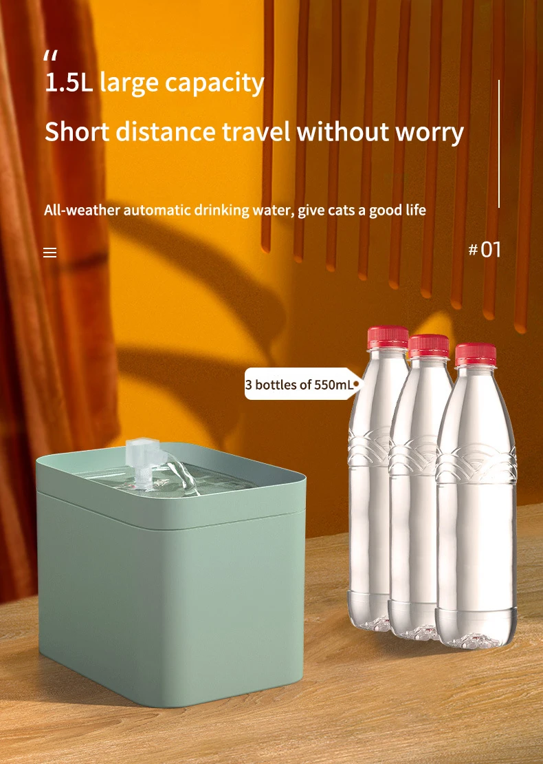 -Емкость 1,5л идеально подходит для собак, кошек и большинства домашних животных.